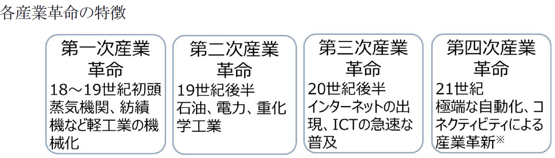 4.0)」と呼ばれる新たな枠組みを生み出しました。「インダストリ-4.0(Industry 4.0)」つまり「第四次産業革命」と言っているのは、第一次産業革命が蒸気機関による工場の機械化、第二次産業革命が電力を活用した大量生産、第三次がエレクトロニクスを活用した自動化という過去3回の産業革命の次という意味です。「第四次産業革命」はITの中でも、すべてのモノをインターネットでつなぎ、そのディジタルデータを有効活用し、問題・課題を解決していくビジョンであるIoT(Internet